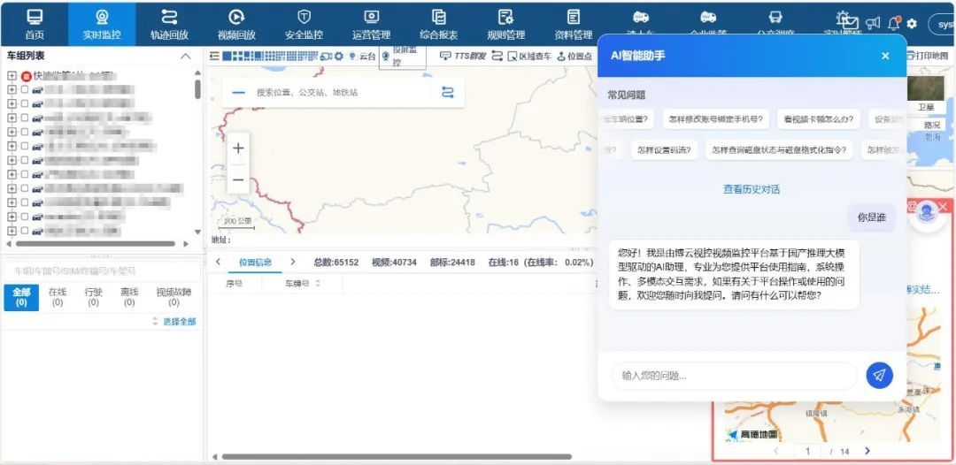 通過大模型的多輪對(duì)話與意圖識(shí)別能力,打破傳統(tǒng)平臺(tái)菜單層級(jí)限制,用戶可直接以自然語(yǔ)言指令完成復(fù)雜操作(如“查詢XX車輛最近24小時(shí)軌跡報(bào)告”),系統(tǒng)自動(dòng)解析語(yǔ)義、調(diào)用接口并生成結(jié)構(gòu)化結(jié)果?,提升用戶體驗(yàn)。